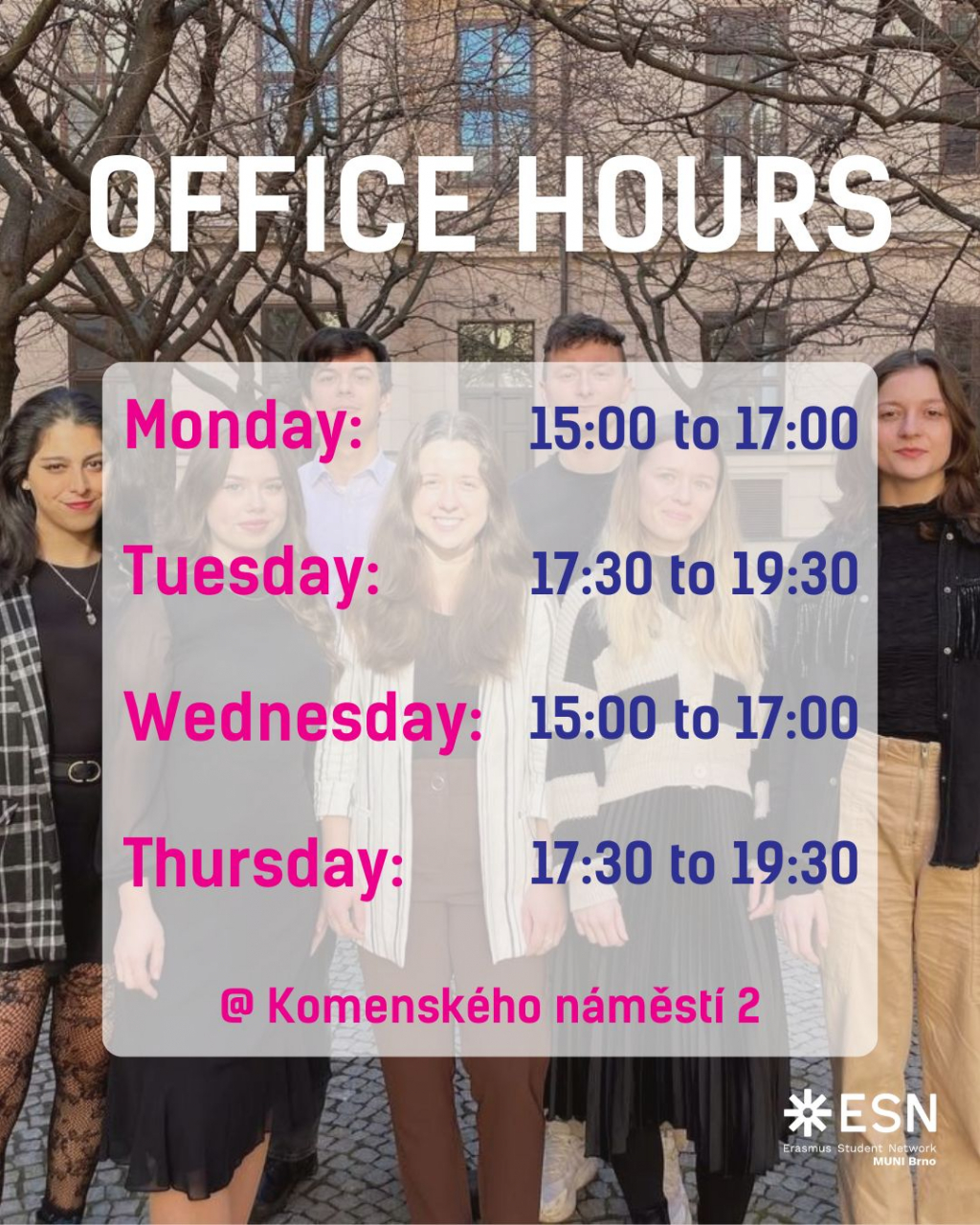 Visit our office at Komenského náměstí 2 during Office hours!